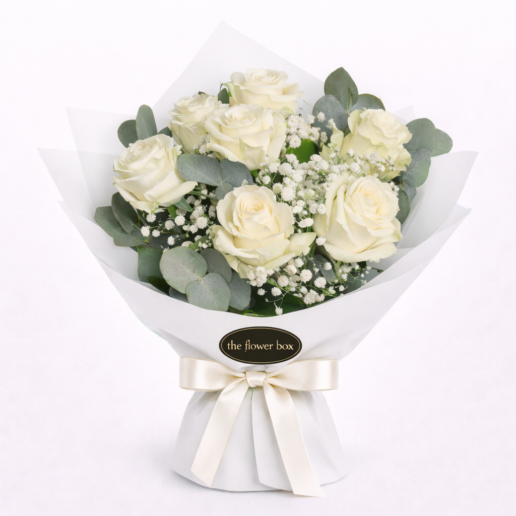 Un buchet clasic și elegant, format din 7 trandafiri atent selecționați, simbol al rafinamentului și al unui gest făcut din suflet. Simplu, dar de efect, acest aranjament pune în valoare frumusețea naturală a florilor, completată discret de materialele decorative pentru un plus de volum și armonie.