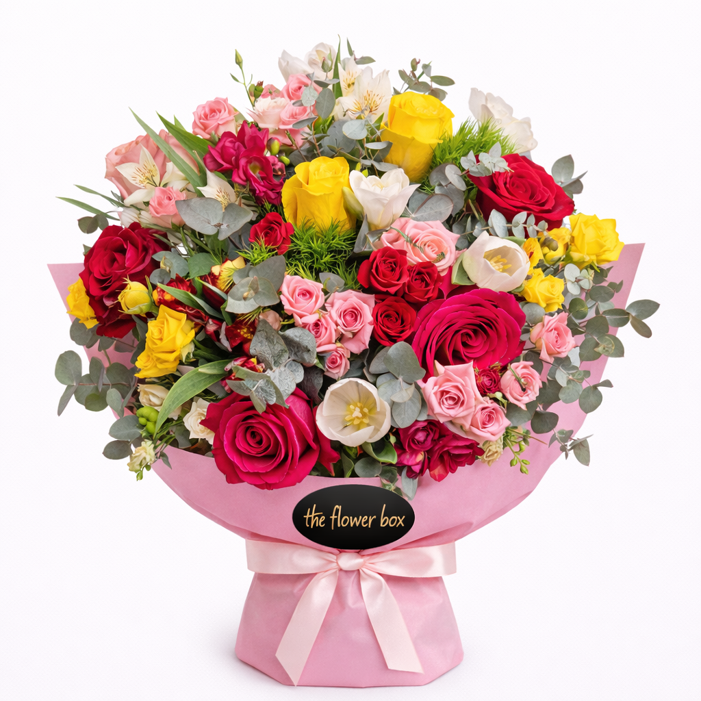- Buchetul este livrat prin curierii proprii The Flower Box, cu grijă pentru ca fiecare detaliu să ajungă impecabil la destinatar.