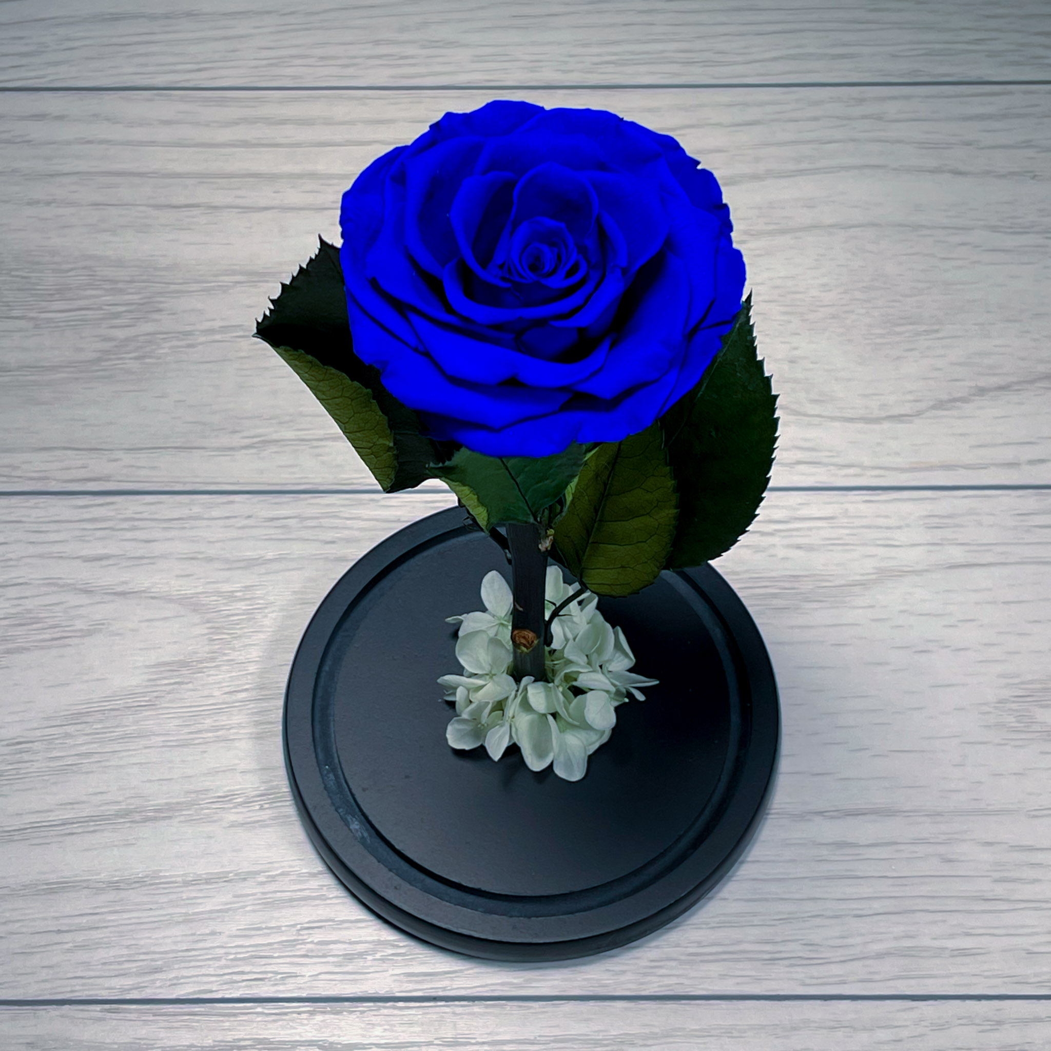 DESCRIERE: 1 x Trandafir Criogenat, 1 x Accesorii, 1 x Cupola sticla cu suport din lemn (Diametru suport: 12 cm, Inaltime: 25 cm)